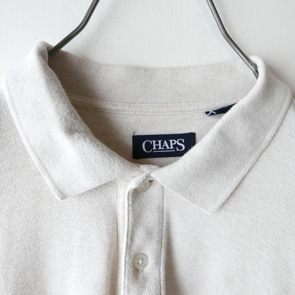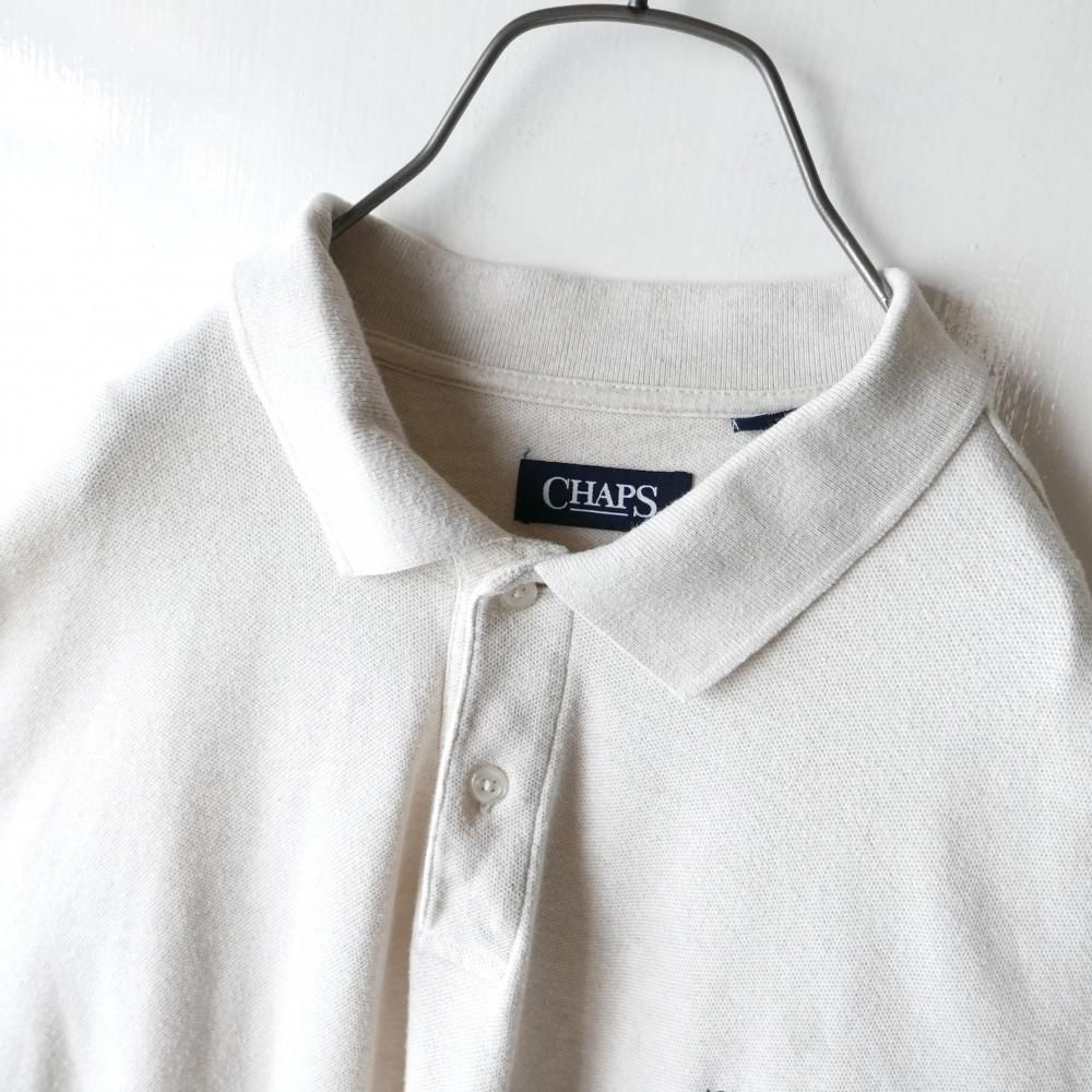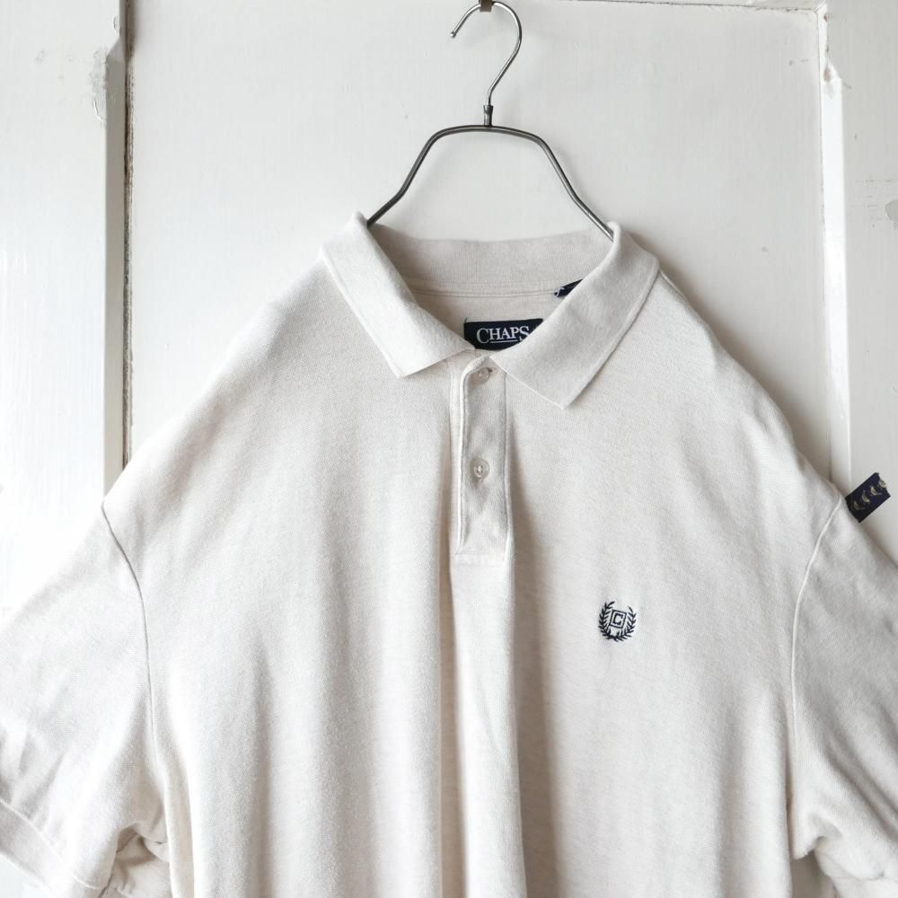 杢MIXのオートミールカラーの半袖ポロ。左胸にはモノトーンのCHAPSエンブレムロゴ刺繍ワンポイント。ダボっとXLサイズ。