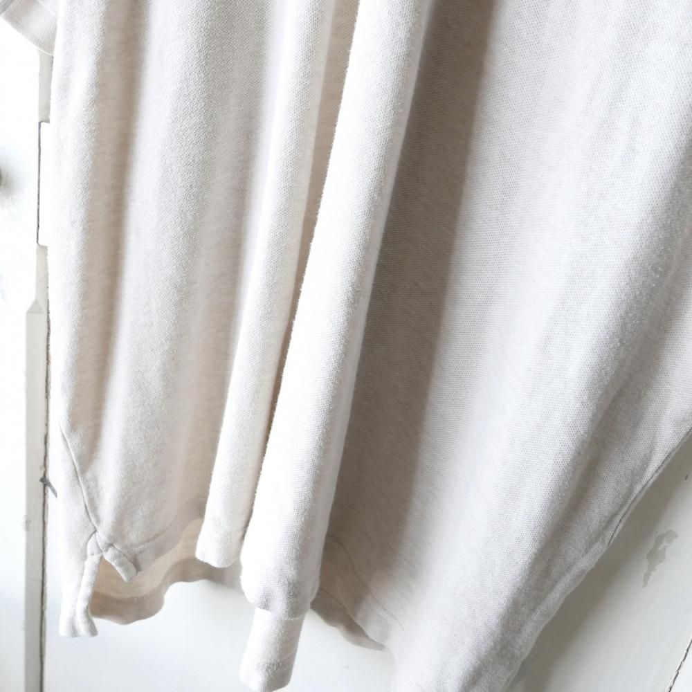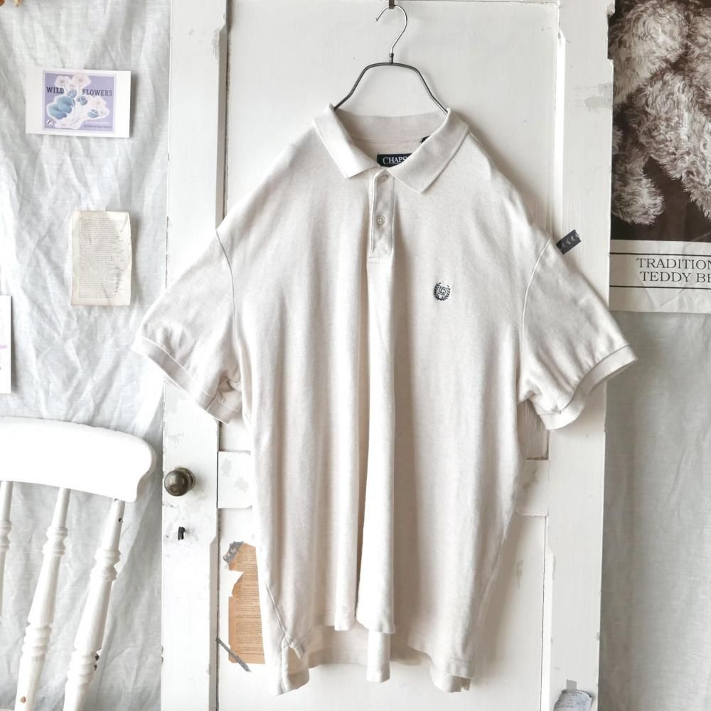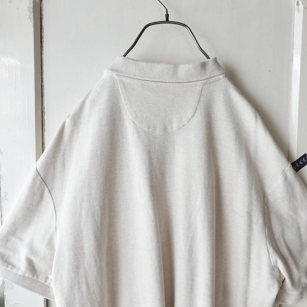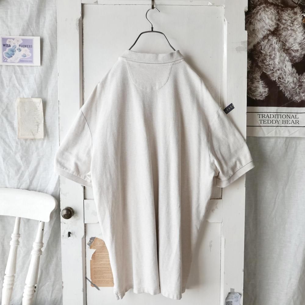 杢MIXのオートミールカラーの半袖ポロ。左胸にはモノトーンのCHAPSエンブレムロゴ刺繍ワンポイント。ダボっとXLサイズ。